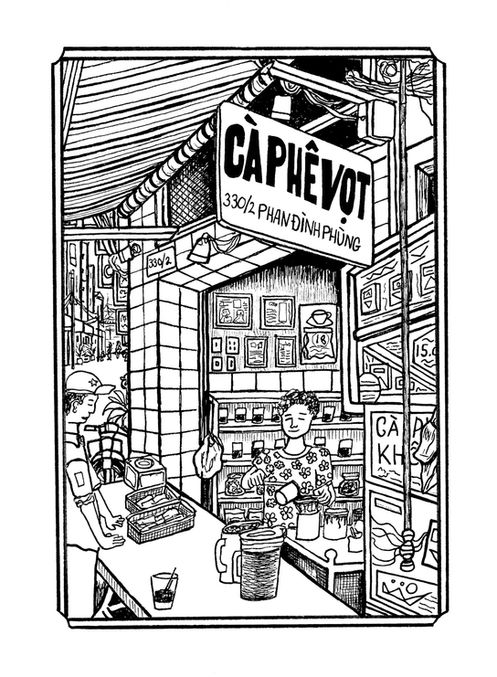 Below are two designs created from a single illustration that I drew by hand from a given photograph. The photo was from a friend's apartment building in Saigon and I was instantly attracted to the composition which is why I had to create this piece.